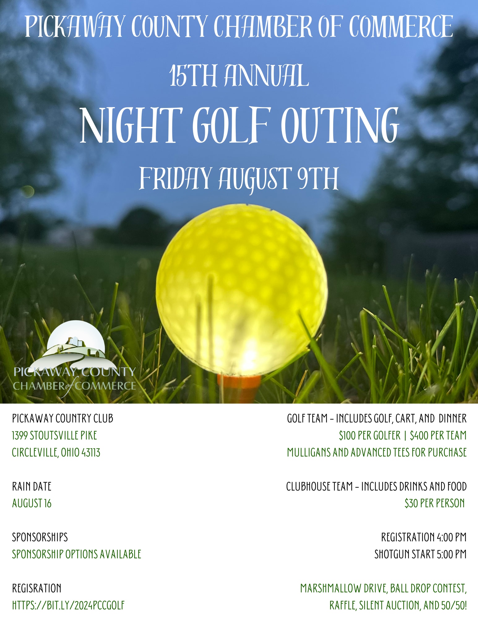 Join us for the 15th Annual Night Golf Outing at the Pickaway County Club!